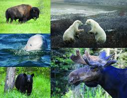 la liebre ártica, la cabra nival y el lemming, y carnívoros, como el oso blanco (en el extremo norte), el lobo, el halcón gerifalte, el oso kodiak y el búho